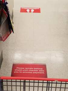 I did a large grocery run last week, list in hand, to our local HEB and I was impressed with the precautions they had implemented for the health of their customers. When I walked up to get a cart, they had an employee spraying down the carts – handles and baskets – with disinfectant between customers. Large red and white signage on the floors reminded shoppers about the social distance spacing and when I went to check out, additional floor signage directed me on where to stand to put my groceries on the conveyor belt, where to stand while waiting to pay, etc. They had large plexiglass panels up between the cashier and the customer.