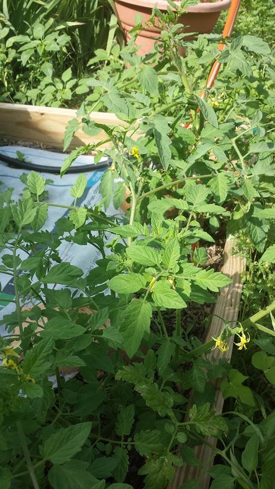We bought one of those tomato plants from Lowe’s that had yellow tomatoes on the photo and I thought, “Eh, we’ll try something new.” (It was a yellow pear heirloom cherry tomato, in case you want to get one of your very own.) That plant is a very HAPPY plant! It grew over 6 feet tall and was VERY prolific. I was giving away cherry tomatoes as often as possible. I would often go home on my lunch break, eat, sit on the back deck and mess around in the garden. Working the soil and with my plants soothes the soul.