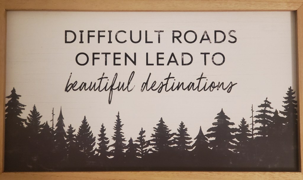 That was a previous part of the journey and I find myself going through another piece of difficult road. Sometimes I need to remember the hard times. I need that reminder that I’ve had difficult roads that took me through some dark places but I had to walk through those dark and difficult times to reach the destination. I need to remember that the heartache, the fear, the self doubt, all of the things that attack us in our weakest moments are not forever and that I can survive and overcome. Not on my own merit. I can’t do it alone. That’s where my faith steps in, my family surrounds me, my chosen village offers me support and encouragement, bolsters me when I’m flagging.