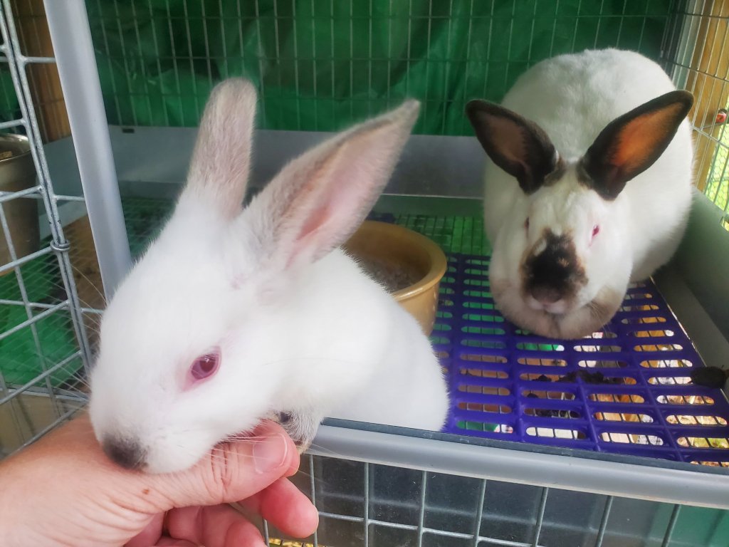 I also use frozen water bottles in their pens. They can lay alongside them for the extra coolness. In the past, I was able to pick up floor tiles for cheap and utilize those as well. I lost those in one of our moves but may look at getting more soon. Although I don’t wet down my rabbits, I do run water on the roofs of their pens and underneath so it creates a temporary coolness until it dries up. The rabbits aren’t keen on the water but their breathing becomes less stressed.